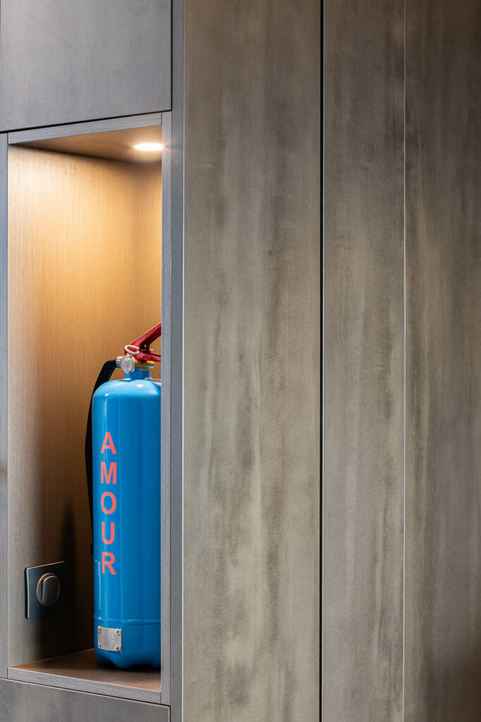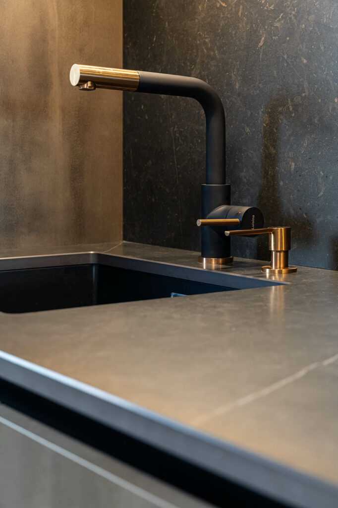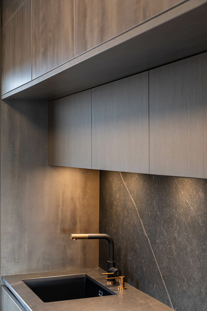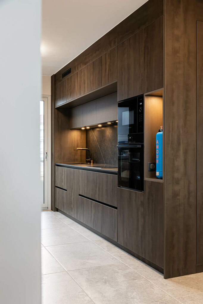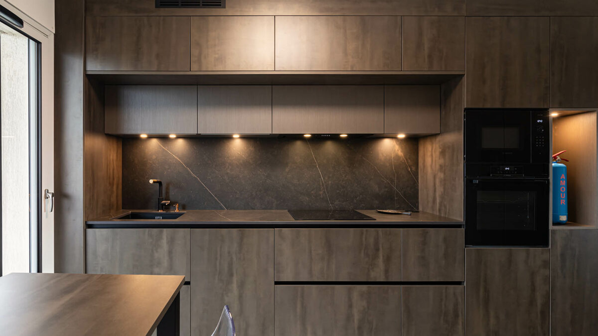 Découvrez ce sublime espace culinaire où design moderne et matières raffinées se rencontrent pour créer une ambiance unique dans ce bel appartement ! Avec ses façades ambra métal , une finition effet métal vieilli et oxydé, et sa crédence en pierre naturelle effet marbre aux veines subtiles , cette cuisine incarne le parfait équilibre entre sophistication et chaleur